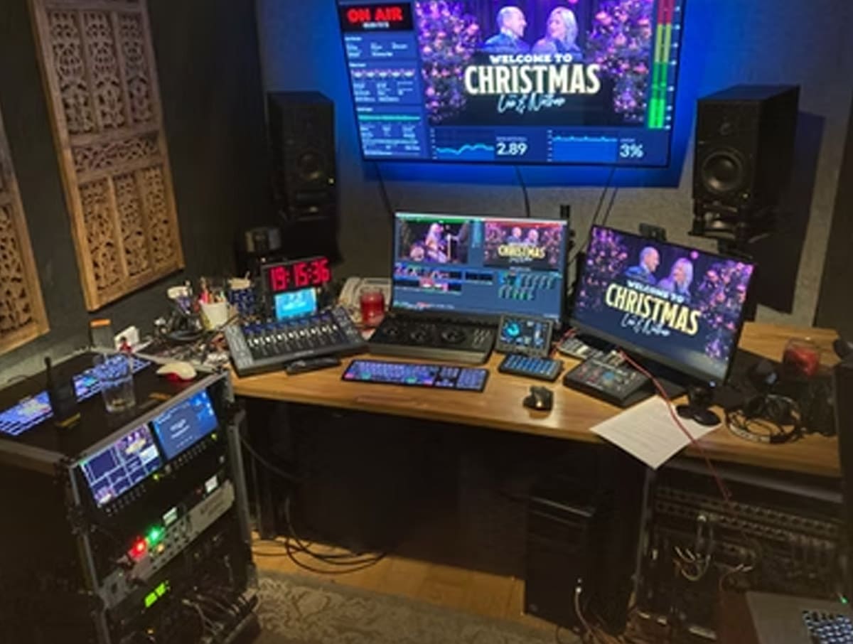 Every year, OCP provides a complete streaming studio set-up across backstage rooms for Spring Harvest Home, on location at Butlins. This includes a three-camera presentation studio, live audio mix for 64 channels of music and networked audio coming from the main stage. in addition, we cover roving presenters with cameras in the auditorium, greenscreen camera and foldback for BSL interpreters, as well as full camera and media mixing via our VMIX system.